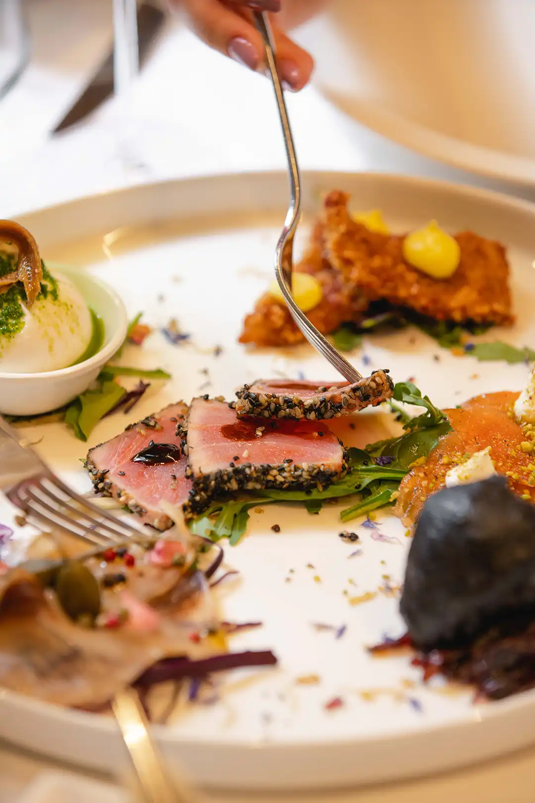 La nostra filosofia si fonda su ingredienti di eccellenza, lavorati con rispetto e creatività. Il pescato del giorno, le crudité di mare, i primi dai contrasti sorprendenti, le composizioni di secondi che combinano terra e mare con naturalezza, i dessert avvolgenti e golosi, rendono ogni pasto un’esperienza coinvolgente, che sorprende per armonia e personalità.